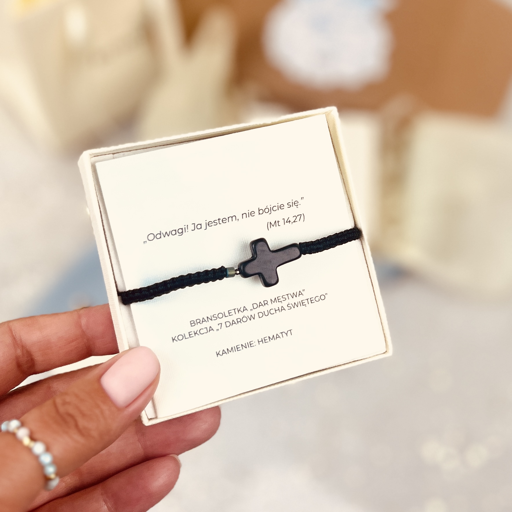 Ta męska bransoletka religijna jest znakiem wewnętrznej siły i duchowej stałości. Została stworzona dla mężczyzny, który wie, że prawdziwe męstwo rodzi się z wiary, odpowiedzialności i wierności wartościom — nawet wtedy, gdy droga nie jest łatwa.