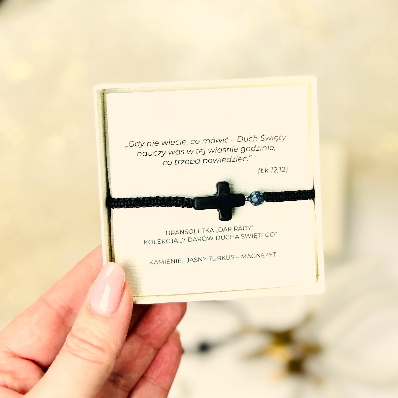 Ta męska bransoletka religijna przypomina, że prawdziwa mądrość i odwaga do działania rodzą się z ciszy serca oraz zaufania Bogu. To znak dla mężczyzny, który chce podejmować decyzje odpowiedzialnie — z wiarą, spokojem i wewnętrzną pewnością.
