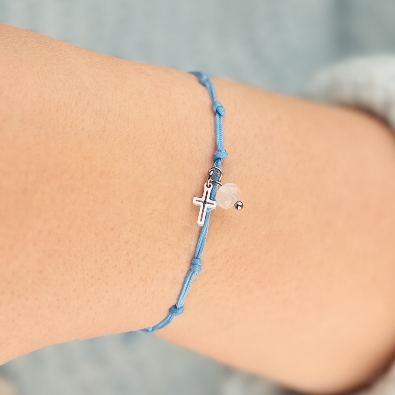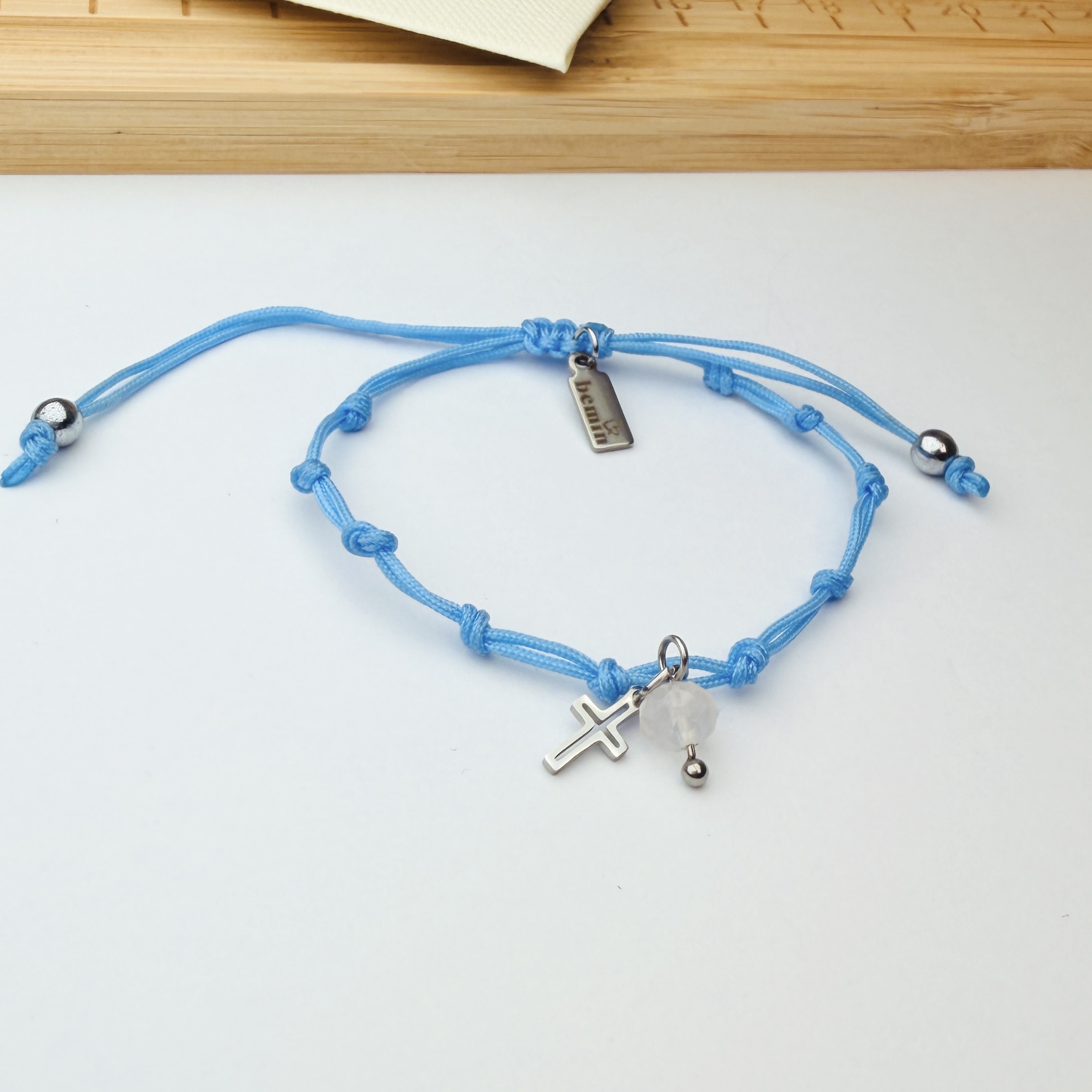 Regulowany sznurek sprawia, że bransoletka dopasowuje się do nadgarstka i jest wygodna w codziennym noszeniu. To bransoletka z krzyżykiem i modlitewnym znaczeniem, która może towarzyszyć w każdej chwili.