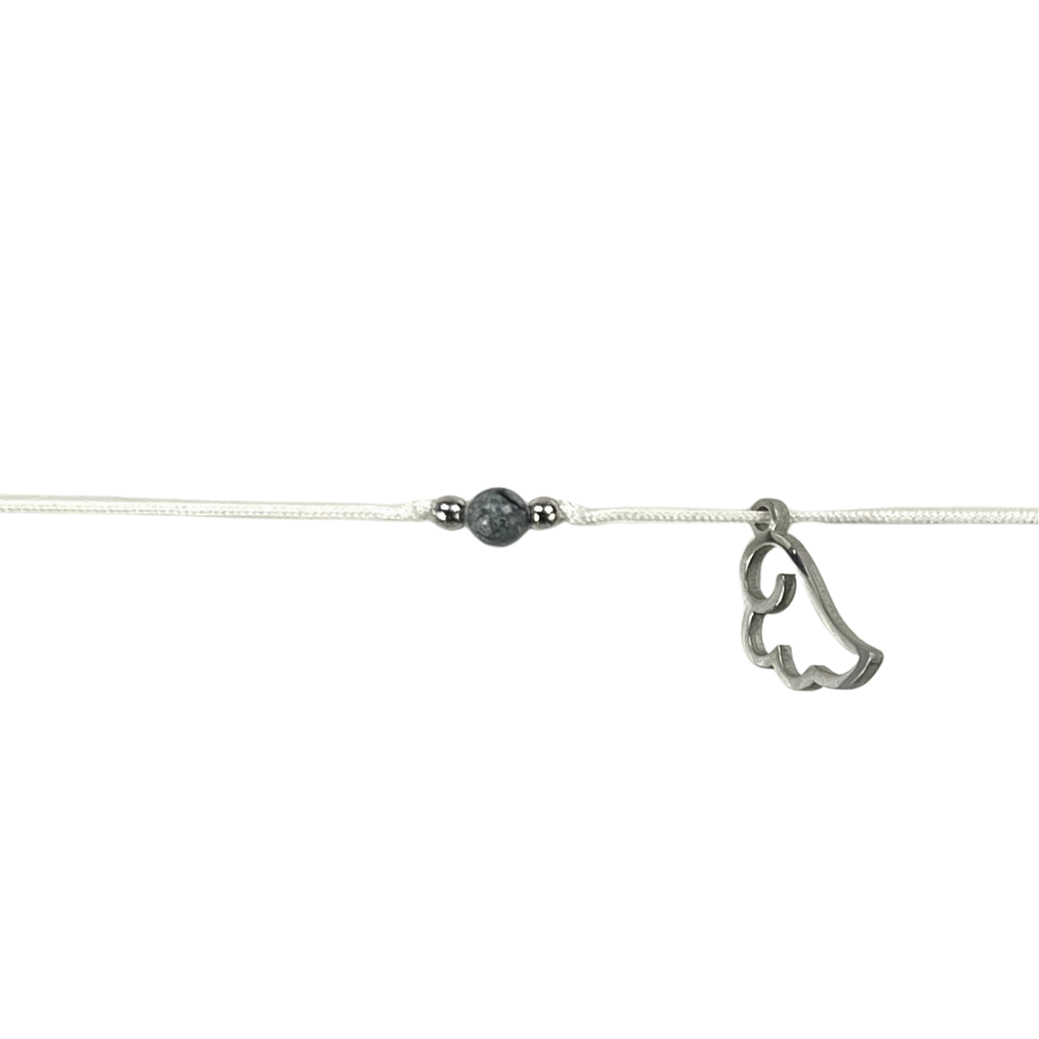 W centrum znajduje się obsydian śnieżny — naturalny kamień kojarzony z ochroną, czujnością i wewnętrznym spokojem. Symbolicznie przypomina o bezpieczeństwie
