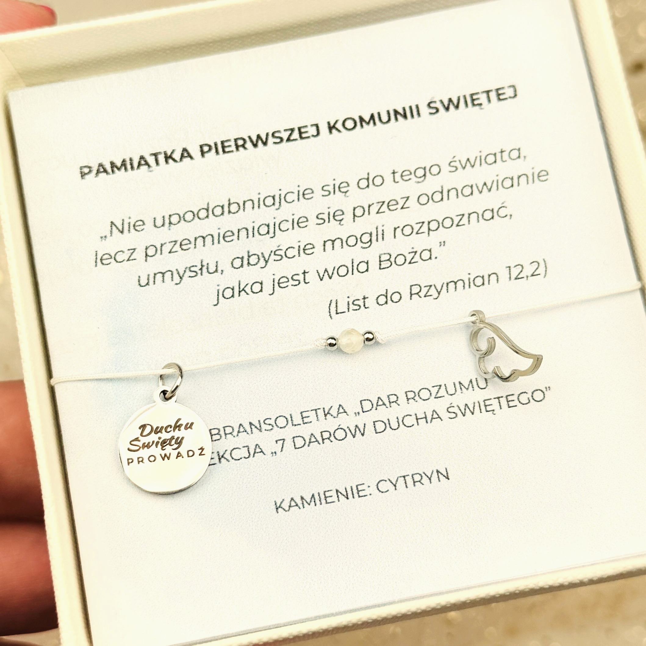 Bransoletka na Komunię dla dziewczynki „Dar Rozumu” to wyjątkowa pamiątka Pierwszej Komunii Świętej i piękny prezent na Komunię dla dziewczynki,